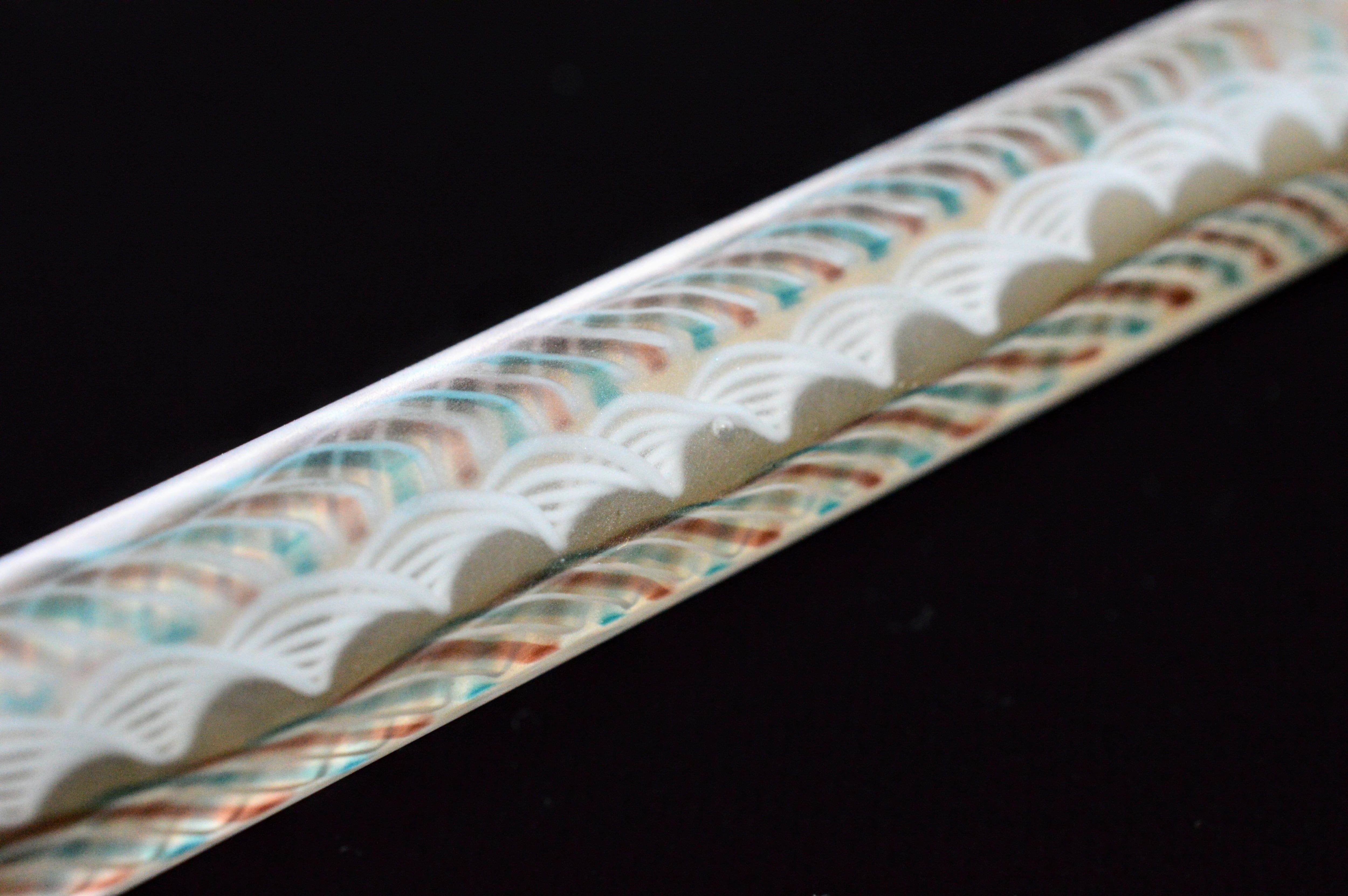 軸に色ガラスで螺旋模様を描いたガラスペンです。